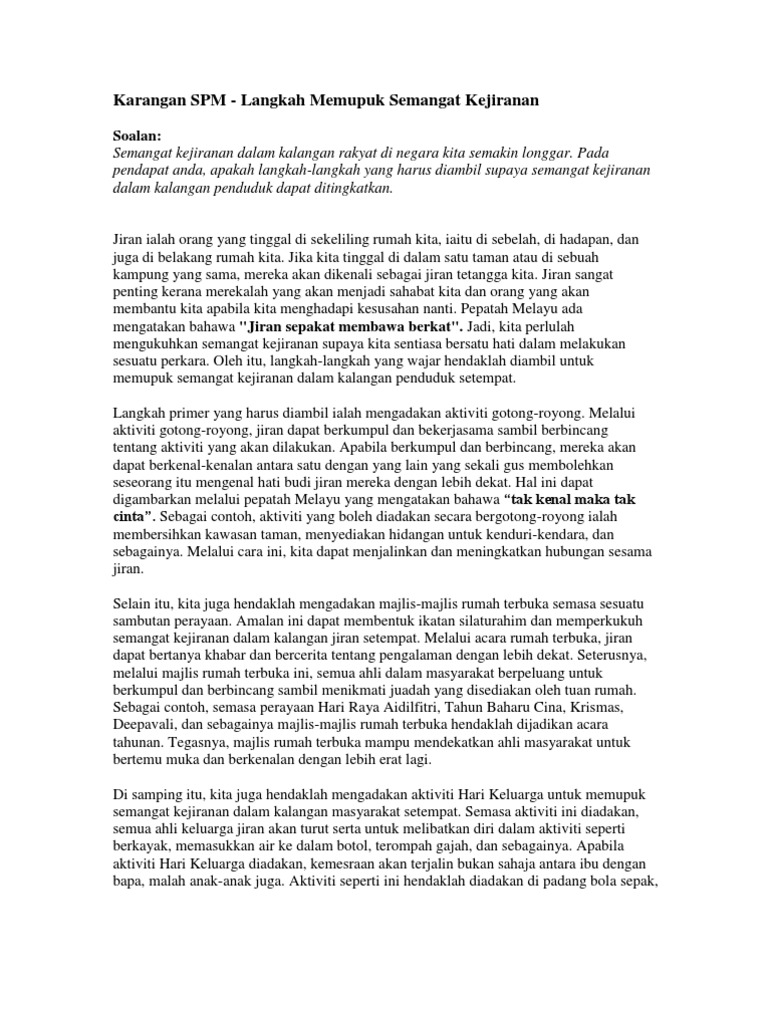 Karangan Spm Kepentingan Semangat Kejiranan